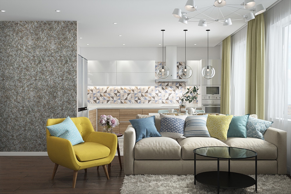 You can choose suitable liquid wallpaper for Scandinavian minimalism. These will be finely dispersed textures in shades of gray and beige, as well as combinations of white and graphite. And for the retro style, bright shades are better suited: green, yellow, pink and even red or orange.