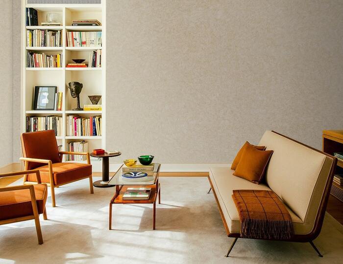 Волокна шелка создают эффект мягкого блеска и придают стенам утонченность, делая их центральным элементом интерьера.